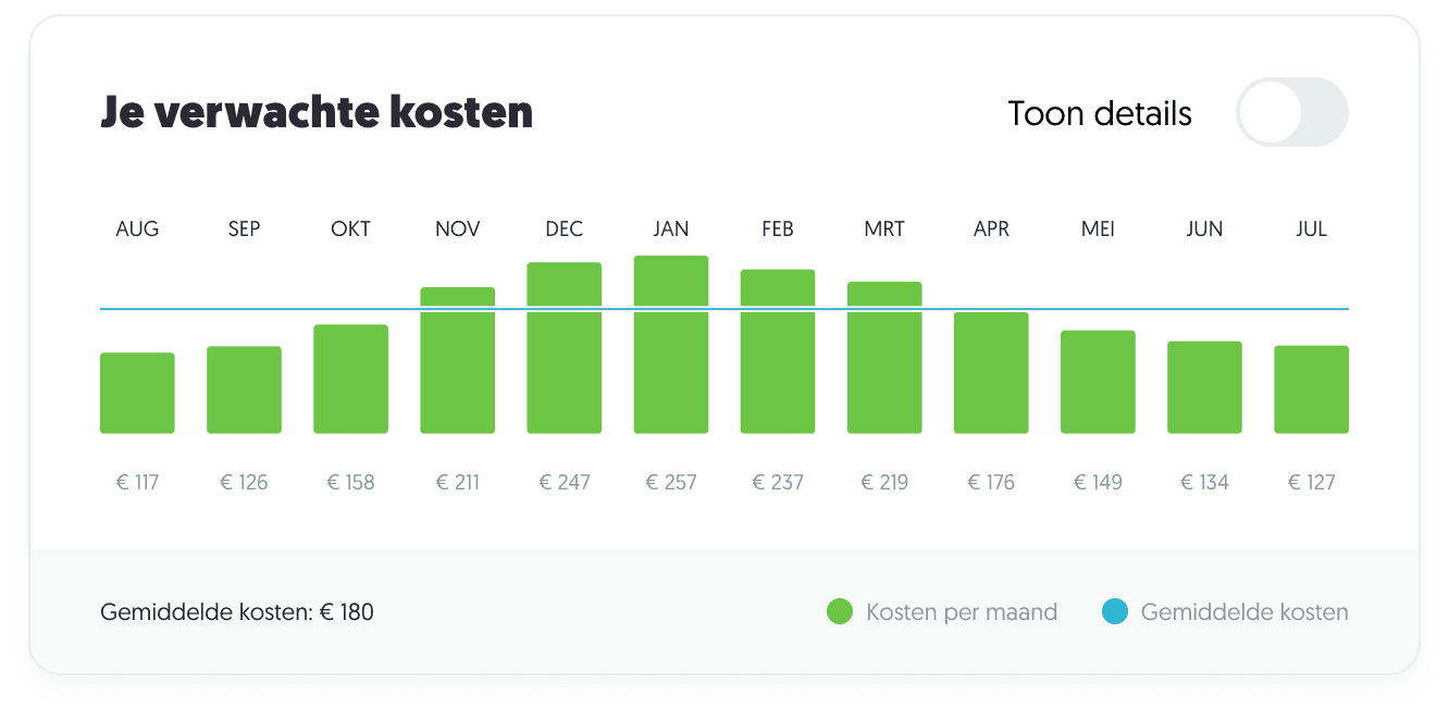 Frank Energie hanteert dynamische prijzen en dynamische voorschotten. Je betaalt bij ons in de winter meer dan in de zomer. Daarom is het contract, in deze tijden van extreme prijsvorming, niet voor iedereen geschikt.